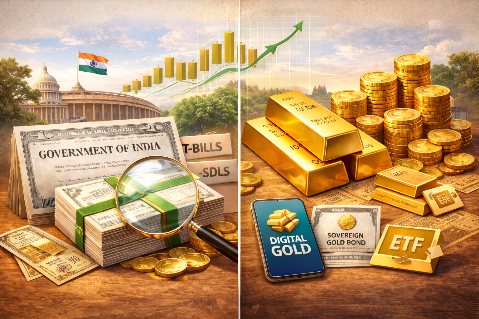 This 1st part of our 2-part series focuses on safe, government-backed and gold-based market investments that help build a strong foundation in your portfolio. These options are ideal for investors who prefer low-risk, stable-return instruments within the market ecosystem.